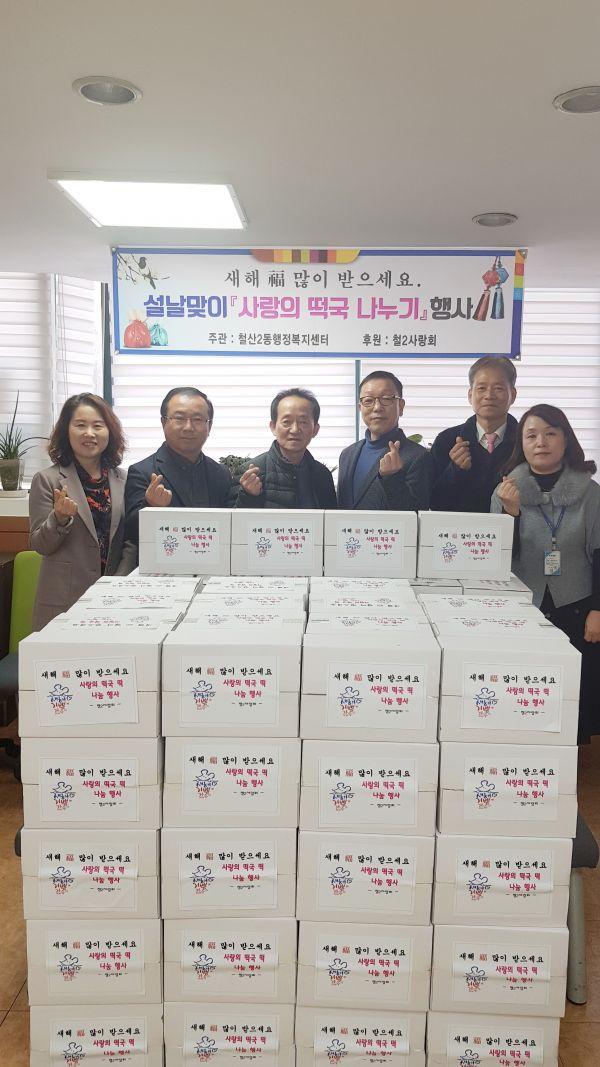 광명시 철산2동 행정복지센터는 지난 20일 철2사랑회의 후원으로 생활이 어려운 가정 170세대에 떡국떡 2㎏씩을 전달했다.