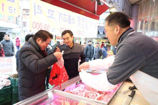최대호 안양시장이 설맞이 전통시장 투어를 벌였다.