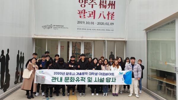 양주시는 지난 22일 겨울방학 대학생 아르바이트 참여자를 대상으로 관내 문화유적지와 도시기반시설 탐방을 진행했다.