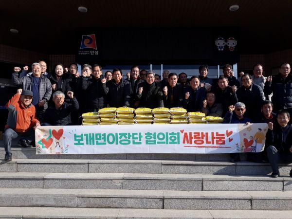 안성시 보개면 이장단협의회는 23일 민족 최대 명절인 설을 맞아 관내 독거노인 및 소외계층 72가구에 쌀을 전달하고 따뜻한 사랑의 온정을 베풀었다.