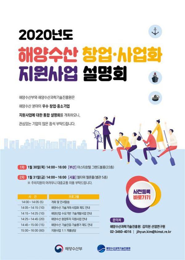 해양수산부와 해양수산과학기술진흥원은 오는 30일과 31일에 ‘해양수산 창업·투자 지원사업’에 대한 설명회를 개최한다.
