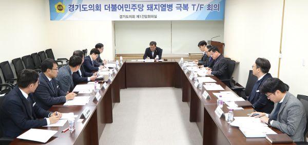 경기도의회 더불어민주당 돼지열병 극복 T/F단은 지난 22일 경기도의회 3층 제1간담회실에서 2차 회의를 개최했다.