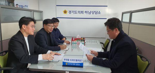 경기도의회 건설교통위원회 김진일 의원은 23일 경기도의회 하남상담소에서 경기도 건설본부장 및 관계 실무공무원들과 도내 도로안전 및 신청사 건립과 관련해 간담회를 실시했다.