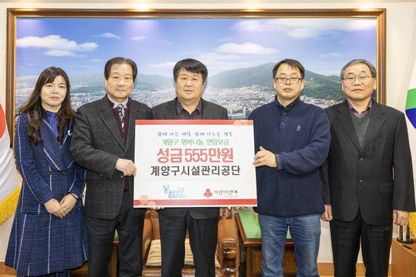 인천 계양구시설관리공단은 지난 23일 ‘희망2020 따뜻한사랑나누기 캠페인’에 동참해 이웃돕기 성금 555만원을 계양구에 기탁했다.