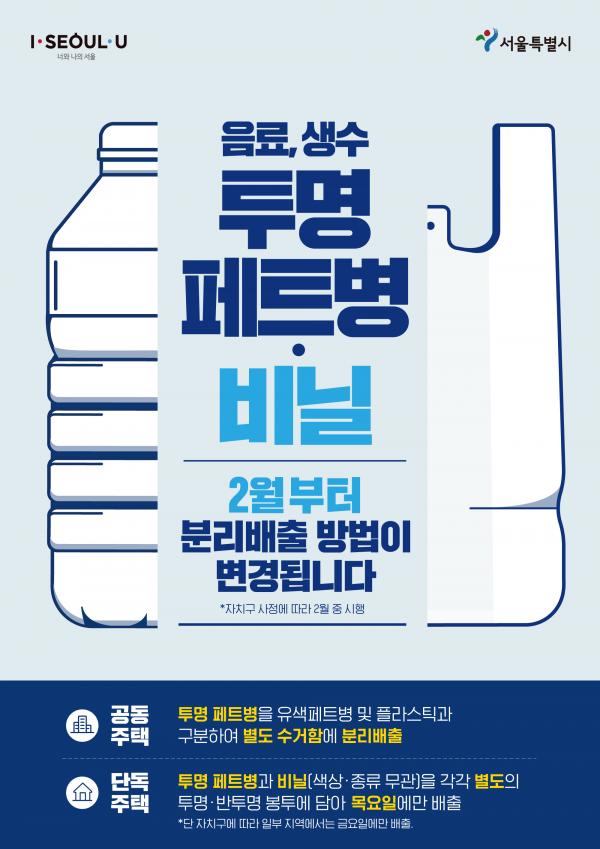 아파트의 경우엔 현재 플라스틱과 함께 버리고 있는 음료·생수 투명 폐페트병을 요일과 상관없이 분리해 배출하면 된다.