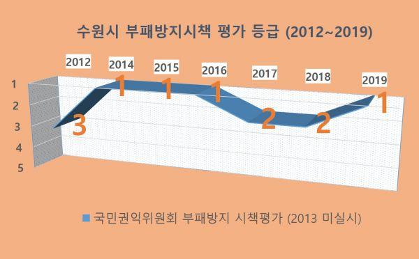 수원시가 국민권익위원회가 주관한 ‘2019 부패방지시책평가’에서 1등급을 받아 6년 연속 우수기관으로 선정되는 성과를 거뒀다.