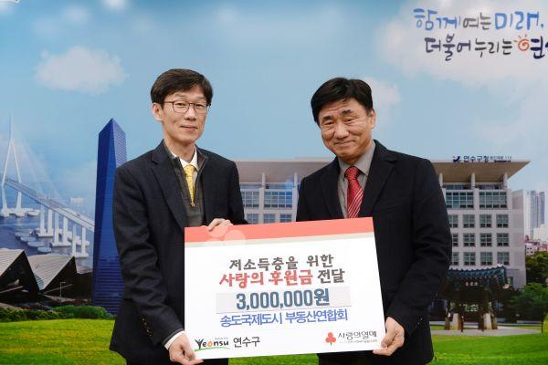 연수구 관계자는 “관내 어려운 이웃을 외면하지 않고 온정을 나눠주신 송도국제도시 부동산연합회에 감사드리며 기부해주신 소중한 마음을 담아 관내 저소득층을 위한 민관협력사업 재원으로 감사히 활용하겠다”고 했다.