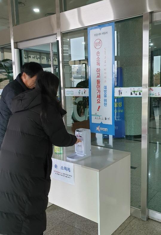바이러스 차단을 위해 시민이 다수 출입하는 관공서에 손소독기와 일회용 마스크를 비치하기도 했다.