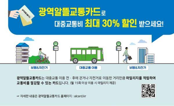 알뜰카드는 월 15회 이상 대중교통 이용 시 이동한 거리와 교통요금 지출액에 따라 마일리지가 적립된다.