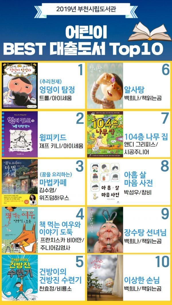 부천시립도서관이 빅데이터를 활용해 2019년 한 해 동안 부천시민에게 가장 사랑받은 ‘2019 베스트 대출도서 TOP 10’을 연령대별로 선정해 발표했다.