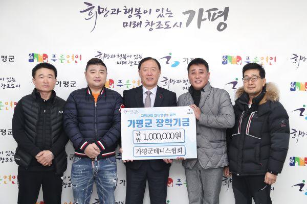 이날 가평군테니스협회가 군청을 찾아 지역인재 육성에 써달라며 100만원의 장학금을 맡겼다.