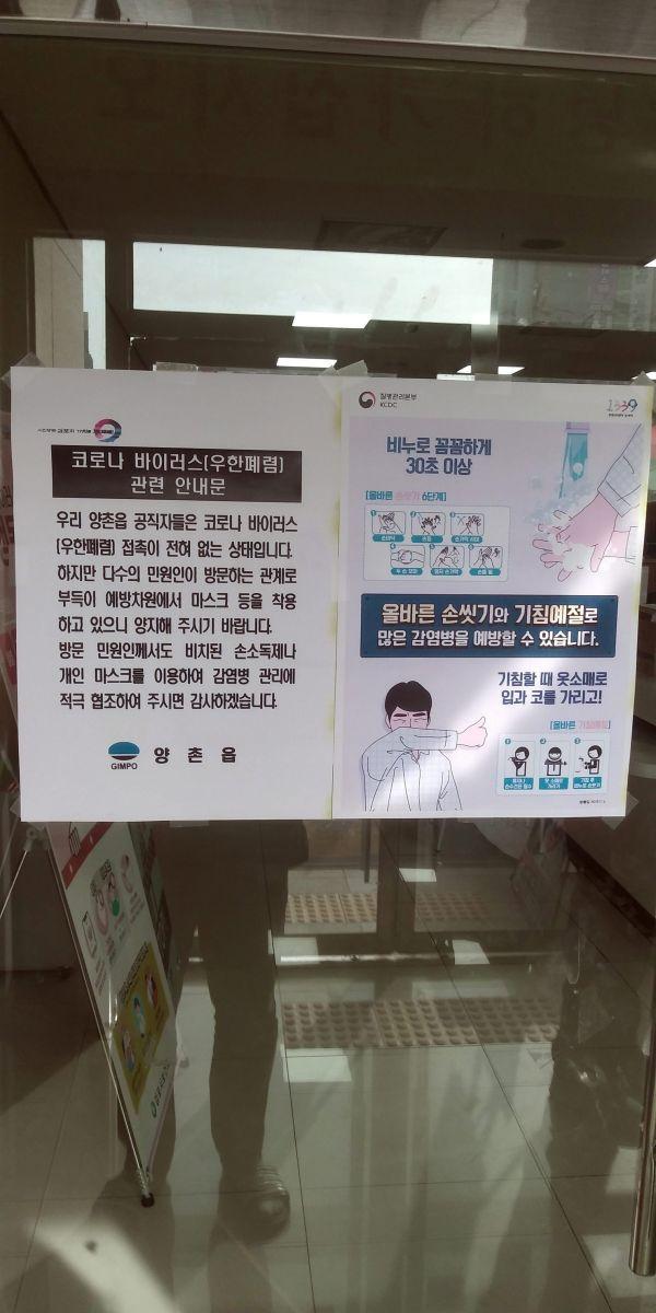 양촌읍행정복지센터는 신종 코로나 바이러스로 인한 사회적 불안 분위기 해소를 위한 선제적 대응으로 주민들의 자율적 예방수칙이 활성화될 수 있도록 안내 등 각종 조치를 취하고 있다.