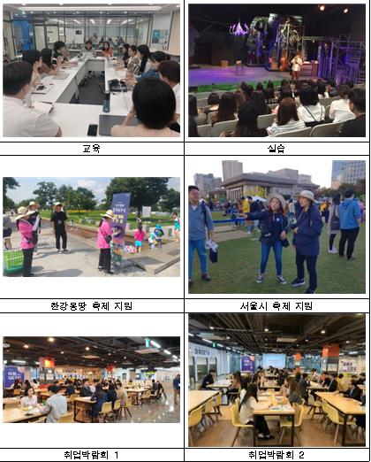 축제·문화행사 기획 이론, 실습 교육을 통해 직무 능력을 쌓고 서울시 주요 축제와 문화행사 현장에 배치되어 직접 축제를 기획·운영·홍보하는 전문 인력으로 양성된다.