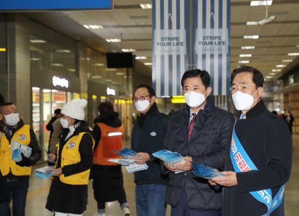 평택·지제·서정리역, 평택터미널에서 감염예방수칙 홍보와 마스크 배부