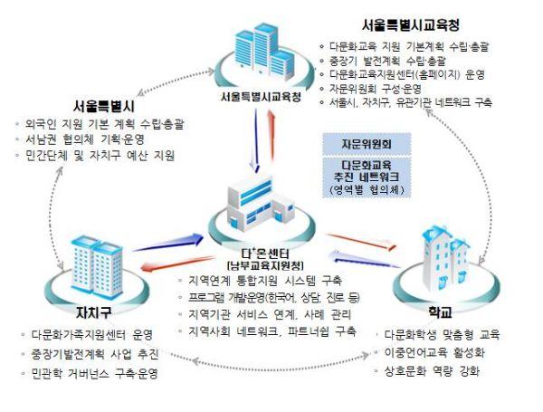 서울시교육청은 구로구청, 금천구청, 영등포구청과 함께 남부교육지원청 관내 다문화학생 밀집지역에 대한 통합 지원을 위해 ‘남부3구, 서울학생 동반성장 지원을 위한 중장기 발전계획’을 공동으로 마련했다.
