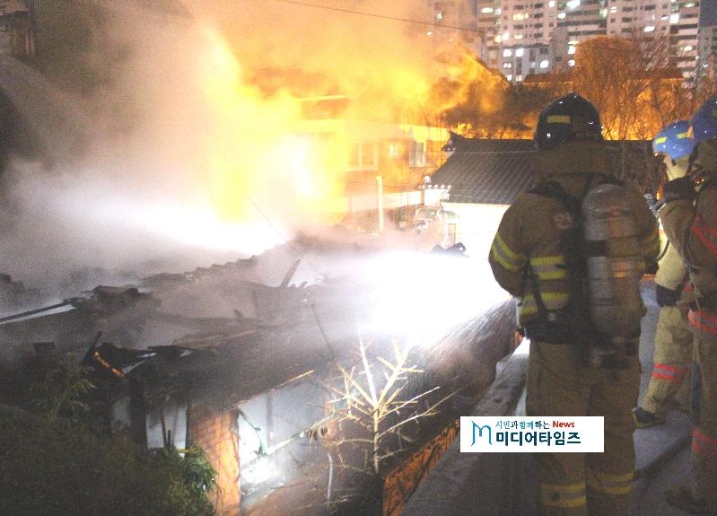 [미디어타임즈=문상수 기자] 인천남부소방서(서장 김성기)는 지난 9일 저녁 9시 5분경 남구 주안동에 위치한 한 주택에서 화염이 보인다는 신고를 받고, 차량 19대 인원 50여명이 출동해 화재를 진압했다.화재는 다행히 인명피해 없이 소방관들에 의해 출동한지 30여분 만에 완전히 진압되었다. 주택 59㎡가 전소되고 인접 빌라 외벽 30㎡가 소실되어 소방서 추산 약 2,800여만원의 재산피해를 냈다.인천남부소방서는 최초 불꽃과 연기를 보고 신고한 인근 주택가 주민의 진술을 토대로 정확한 화재 원인을 조사 중에 있다.