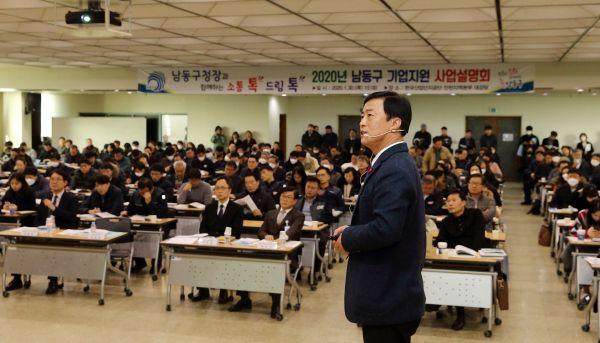 이날 남동산단 내 한국산업단지공단 인천지역본부 대강당에서 개최된‘남동구청장과 함께하는 소통 톡 드림 톡 2020년 남동구 기업지원 사업설명회’는 지역경제의 신성장 동력 창출과 기업 경쟁력 강화를 위해 마련된 자리다.