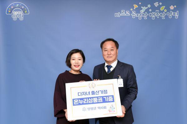 양평군 약사회는 지난 30일 넷째아 이상 출산가정의 경제적 지원을 돕기 위해 100만원 상당의 온누리 상품권을 양평군에 전달했다.