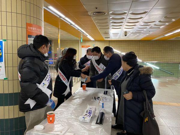 고양시 삼송동 행정복지센터는 지난 30일 출근 시간 대에 3호선 지하철 삼송역 내에서 신종 코로나바이러스 확산 방지 및 예방 캠페인을 벌였다.