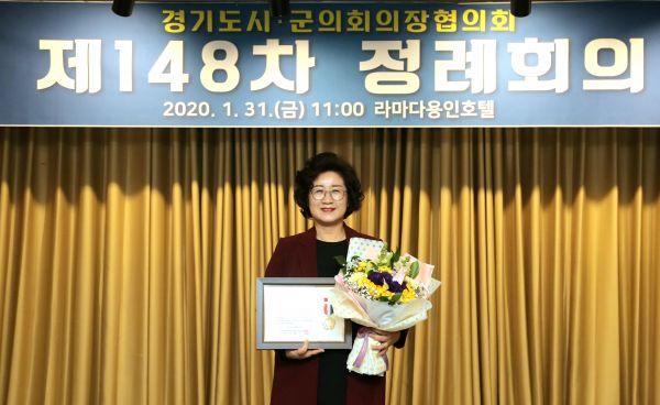 광주시의회 이미영 의원이 31일 라마다용인호텔에서 열린 제148차 경기도시·군의회의장협의회 정례회에서 ‘지방의정봉사상’을 수상했다.