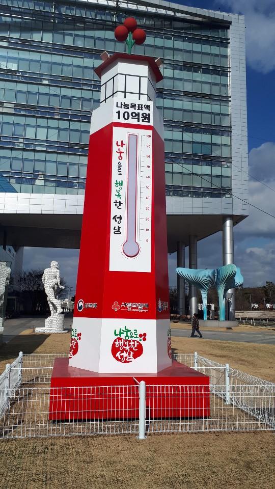 성남시는 시청 잔디광장에 설치한 ‘사랑의 온도탑’이 지난 29일 자로 100도를 달성했다고 31일 밝혔다.