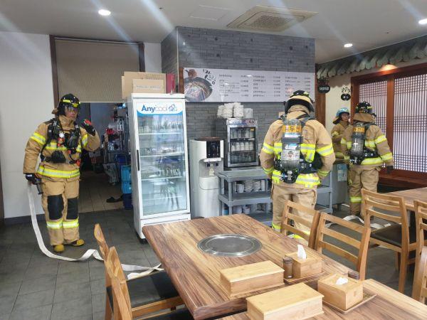 동두천시는 지난 30일 오후 2시 소요산 입구에 위치한 축산물브랜드육 타운에서 동두천시청과 동두천소방서의 현장대응 합동소방 훈련을 실시했다.