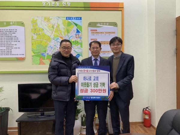 장기본동 소재 하나로교회에서는 지난 30일 장기본동 행정복지센터를 방문해 성금 300만원을 기탁했다.