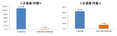 대상 기간 동안 기업당 평균 110명의 고용을 창출했으며 고용노동부는 올해도 좋은 일자리를 창출하고 있는 기업이 일자리 으뜸기업으로 선정될 수 있도록, 일자리 창출 규모와 일자리의 질을 함께 고려해 100개 기업을 선정할 계획이라고 전했다.