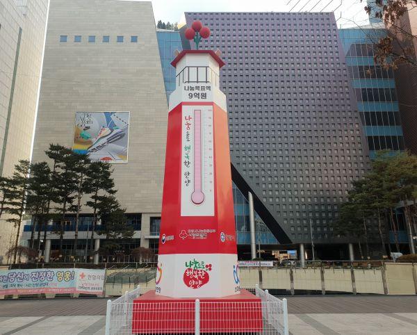 안양시 사랑의 온도탑은 경기사회복지공동모금회 안양시나눔운동본부 주관으로 지난해 12월 9일 범계역 롯데백화점 옆 광장에서 제막했다.