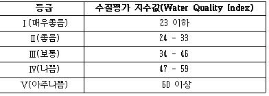 2019년 조사 결과를 살펴보면, 전국 425개 정점 중 81%가 1~2등급으로 ‘매우좋음’, ‘좋음’ 수준을 보였으나, 상대적으로 여름철에는 수질이 나빠지는 경향을 보였다.