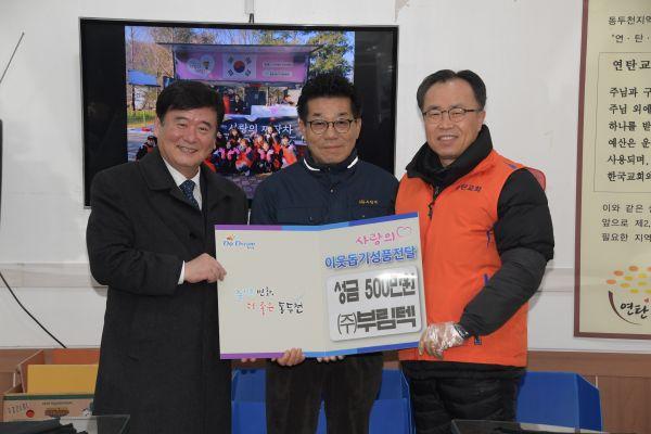 ㈜부림텍은 지난 1월 31일 연탄은행에 성금 500만원을 기탁하고 어려운 이웃들을 위한 연탄봉사에 참여했다.