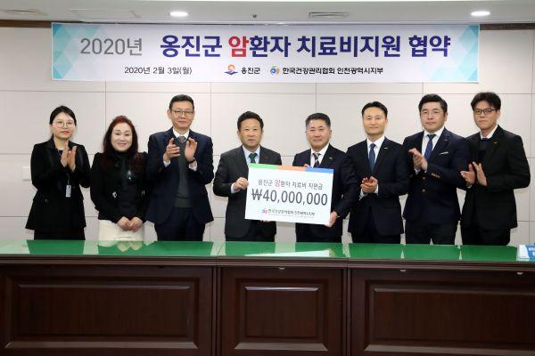 이에 따라 한국건강관리협회는 사회공헌기금 4천만원을 암투병을 겪는 옹진군 취약계층에게 1인당 최대 2백만원을 지원한다.