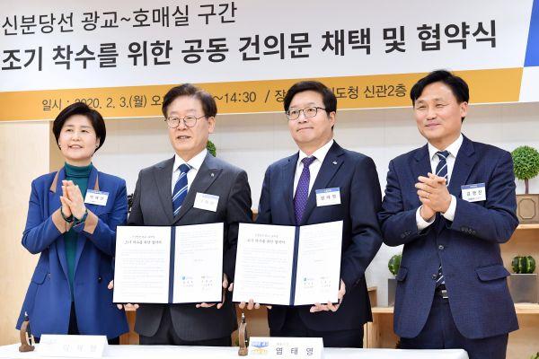 수원시와 경기도가 3일 경기도청 상황실에서 ‘신분당선 광교~호매실 조기 착수를 위한 협약’을 체결하고 사업이 조속하게 추진될 수 있도록 적극적으로 협력하기로 했다.