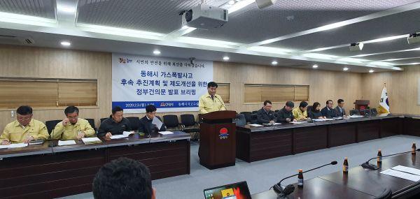 동해시 사고수습본부가 3일 오전 11시 가스폭발 후속조치 및 제도개선을 위한 브리핑을 실시했다.