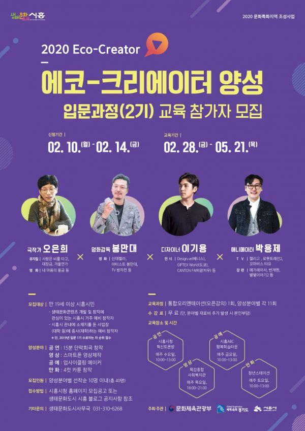 시흥시가 생태문화도시 조성 사업의 일환으로 ‘2020 에코-크리에이터 양성’을 위한 교육 참가자를 모집한다.