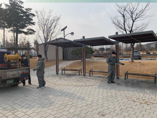 또한 신종 코로나 바이러스 감염 확산방지를 위해 시민들이 자주 이용하는 공원 내 화장실, 벤치, 운동기구, 그네의자 등의 시설물에 대해 방역소독도 실시하고 있다.