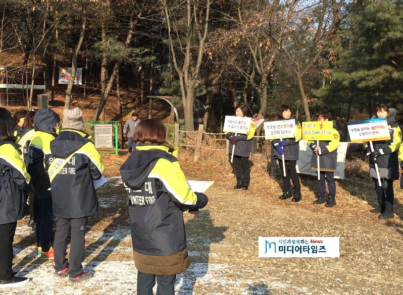 | 문학여성의용소방대 산불화재예방 캠페인모습. <ⓒ미디어타임즈> |