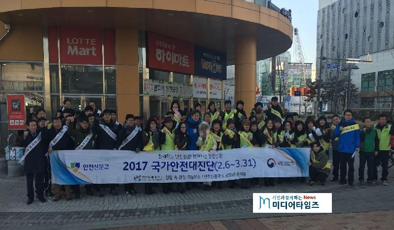 [미디어타임즈=문상수 기자] 인천 서구(구청장 강범석)는 지난 10일 롯데마트 청라점에서 국가안전대진단 홍보 캠페인 및 다중이용시설 안전관리 실태 현장점검을 실시했다. 이번 캠페인은 강범석 서구청장, 서구청 관계자, 한국전기안전공사 인천서부지사, 서구 자율방재단, (사)안전모니터봉사단 인천시연합회 서구지회, 롯데마트 청라점 관계자 등 60여명이 참석하여 현수막, 전단지 등 홍보물을 통한 국가안전대진단 홍보를 실시했다. 또한 강범석 서구청장과 박찬영 한국전기안전공사 인천서부지사장은 롯데마트 청라점 방재실을 방문하여 방재시설 및 수변전 설비를 확인하고, 재난상황발생 시 대처 계획에 대해 점검했다. 서구 관계자는 “2017년 국가안전대진단 기간 동안 ‘민간 시설 자체 점검’ 및 ‘안전신문고를 통한 주민들의 안전위해요소 신고’ 등 구민들의 자발적인 참여를 유도해 안전한 서구를 만드는데 최선을 다하겠다”고 말했다.