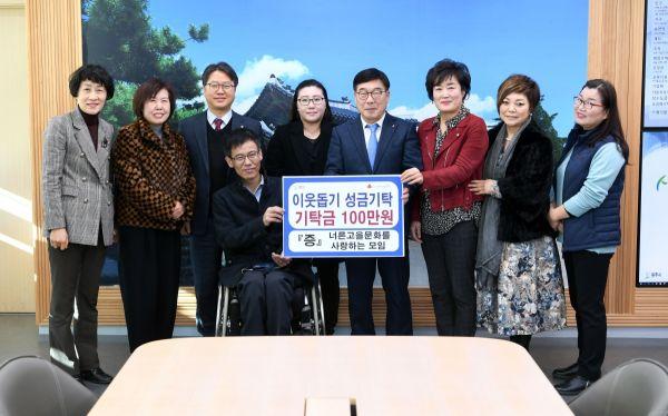 너른고을문화를 사랑하는 모임 이정순 회장 일행은 4일 광주시를 방문해 어려운 이웃에게 전달해 달라며 성금 100만원을 전달했다.