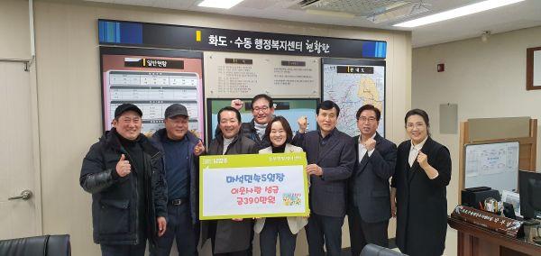 남양주시 마석민속5일장에서는 지난 3일 화도수동행정복지센터를 방문해 지역 내 어려운 이웃들을 위한 후원금 390만원을 전달했다.