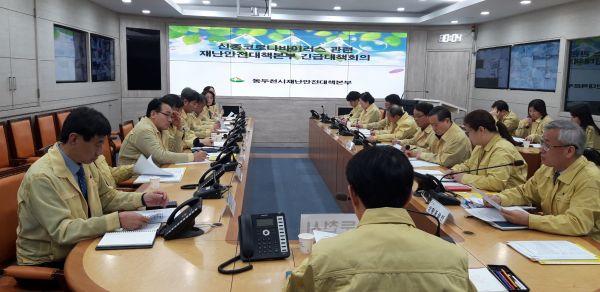 이날 긴급대책회의에서는 전 관련부서 담당팀장이 배석해, 중앙에서 실시하는 영상회의를 참관하고 지역 내 신종 코로나바이러스의 전파·확산을 방지하기 위한 다중이용시설, 대중교통, 취약계층 등에 대한 감염병 확산 예방대책에 대해 논의했다.