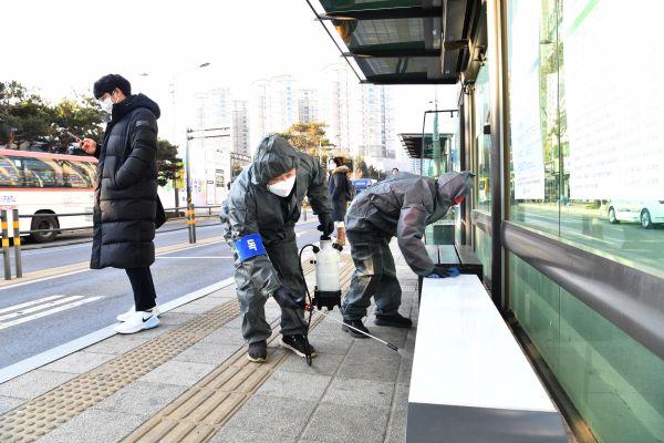 이날 소독은 다중이 많이 이용하는 공중화장실, 버스정류장, 시청사, 유니온타워 및 동 행정복지센터, 체육·문화·복지시설 등 85개소를 대상으로 실시했다.