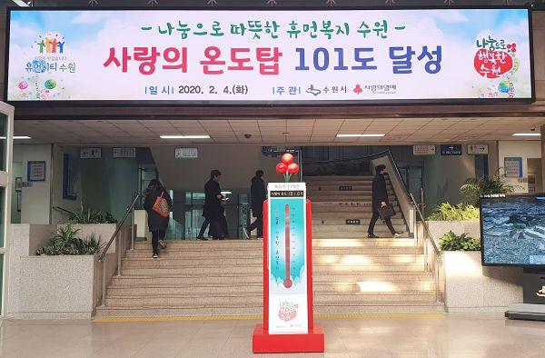 수원시와 경기사회복지공동모금회는 지난해 11월 20일 시청 로비에 사랑의 온도탑을 설치하고 지난 1월31일까지 ‘희망 2020 나눔 캠페인’을 전개했다.