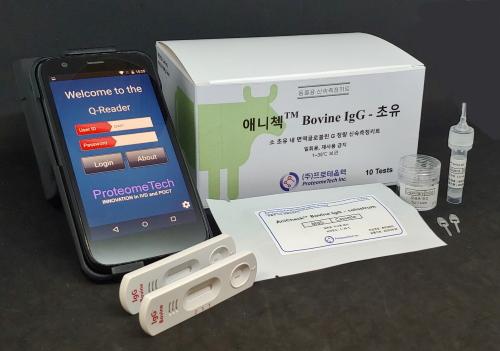 초유 면역물질 측정키트는 젖소에서 나오는 초유의 면역물질 함량을 간편하게 측정할 수 있는 키트로 여주시와 ㈜프로테옴텍이 공동연구개발해 특허를 출원하고 전국 판매를 시작한 제품이다.
