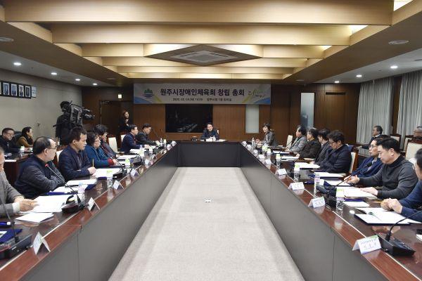 원주시 장애인체육회가 지난 4일 원주시청에서 창립총회를 열고 원주지역 장애인 체육의 새로운 시작을 알렸다.
