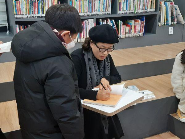 이날 참석한 한 이용자는 “책 속에 등장하는 배경이 우리 마을이라는 말에 작품 속 주인공이 거닐던 등하굣길을 걷고 싶은 생각이 들었다”며 “내가 사는 마을을 아름다운 동화로 담아내는 작가가 있다는 것에 자부심을 느낀다”고 말했다.