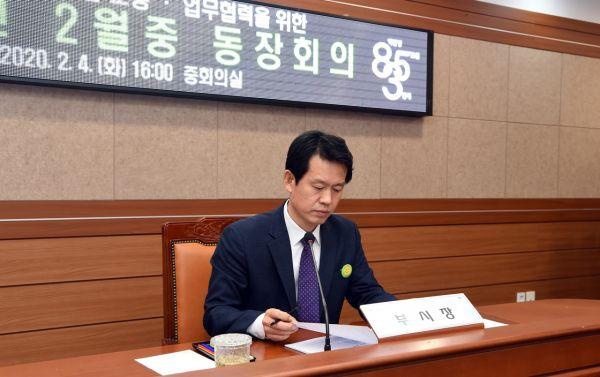 황범순 의정부시 부시장 주재로 진행된 이번 동장회의는 신종 코로나바이러스 감염병에 대한 철저한 대응과 정확한 정보 전달의 중요성을 동장들에게 전달하기 위해 마련했다.