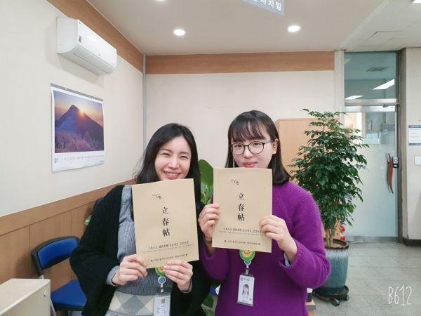 의정부시 신곡1동은 지난 4일 경자년 봄을 알리는 첫 번째 절기인 입춘을 맞이해 행정복지센터와 주민자치센터 방문객에게 입춘첩을 담아드리는 입춘첩 나누기 행사를 개최했다.