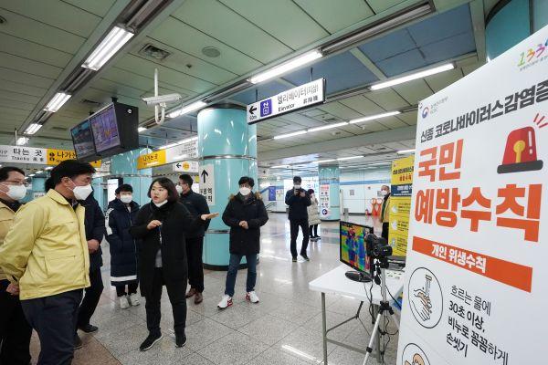 구민들이 역사 입구 열화상 감시카메라에 노출된 스스로의 체온을 확인하고 체온이 37.5도를 넘으면 선별진료소 등을 방문토록 유도하고 호흡기 증상이나 발열 등 이상 징후를 보이는 사람은 즉시 병원을 찾아 진료를 받도록하는 시스템이다.