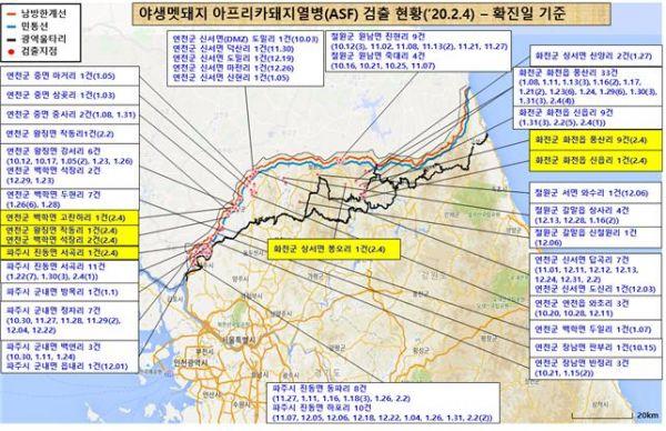 조명래 장관은 “화천지역에서는 양성개체가 광역울타리와 인접해 발생하고 있어 확산을 차단하는데 총력을 기울여야 한다”며 “군부대와 협조해 폐사체 수색 범위를 넓히고 울타리 관리와 현장 소독 등 바이러스 방역 활동을 강화해 달라”고 당부했다.